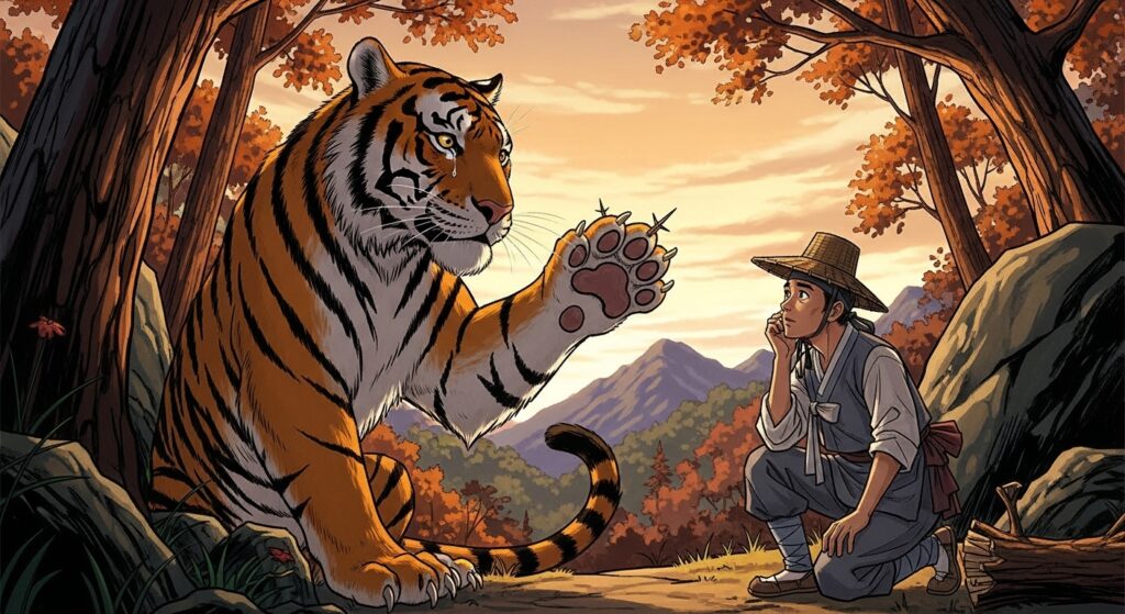 […] to the final chapter of our journey through Korean tiger culture! We’ve laughed at the dried persimmon story and met grateful tigers who repaid kindness. Now we explore the deepest layer: “Korean tiger wisdom” embedded in stories that […]